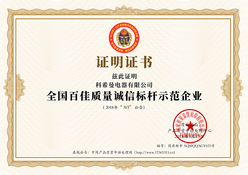 全國(guó)百佳質(zhì)量誠(chéng)信標(biāo)桿示范企業(yè)