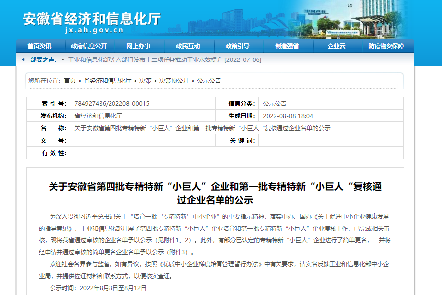 2022年8月8日,根據(jù)工信部統(tǒng)一部署,安徽省經(jīng)信廳發(fā)布了《關(guān)于安徽省第四批專精特新“小巨人”企業(yè)名單的公示》,科希曼電器有限公司作為空氣源熱泵的行業(yè)領(lǐng)先者榮譽(yù)上榜,此次入選,既是對(duì)科希曼綜合實(shí)力的認(rèn)可,也是對(duì)科希曼十年來(lái)始終致力于在清潔能源領(lǐng)域深耕不輟,一直以實(shí)際行動(dòng)參與節(jié)能減排,助力國(guó)家“雙碳”戰(zhàn)略發(fā)展的肯定和表彰。