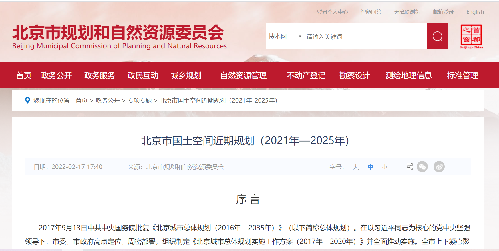 日前,北京市政府官網(wǎng)公布了《2021-2025年北京市國(guó)土空間近期規(guī)劃》。