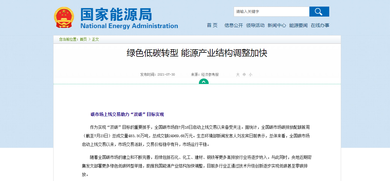 隨著全國碳市場的建立和不斷完善,后續(xù)將有包括石化、化工、建材、鋼鐵等更多高排放行業(yè)逐步納入。在此背景下,我國能源產(chǎn)業(yè)結(jié)構(gòu)調(diào)整也在加快進(jìn)行。