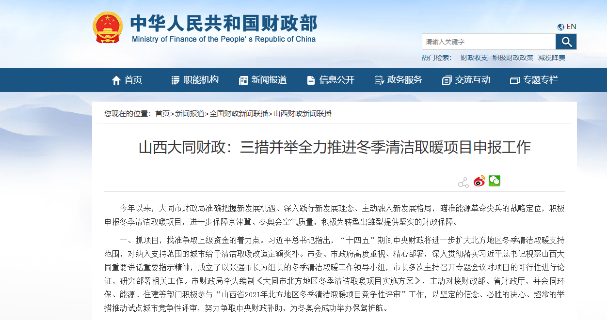 今年以來,大同市財政局準確把握新發(fā)展機遇、深入踐行新發(fā)展理念、主動融入新發(fā)展格局,瞄準能源革命尖兵的戰(zhàn)略定位,積極申報冬季清潔取暖項目,進一步保障京津冀、冬奧會空氣質(zhì)量,積極為轉(zhuǎn)型出雛型提供堅實的財政保障。