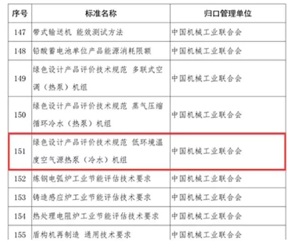 近日,為加快推進(jìn)工業(yè)節(jié)能與綠色標(biāo)準(zhǔn)體系建設(shè),充分發(fā)揮標(biāo)準(zhǔn)對工業(yè)綠色發(fā)展的引領(lǐng)支撐作用,由工業(yè)和信息化主管部門主導(dǎo),部標(biāo)準(zhǔn)化委托機(jī)構(gòu)組織,有關(guān)行業(yè)協(xié)會及專家評審參與,協(xié)商一致并公示2019年度工業(yè)節(jié)能與綠色標(biāo)準(zhǔn)研究項目。其中,低環(huán)境溫度空氣源熱泵(冷水)機(jī)組被收錄在內(nèi)。