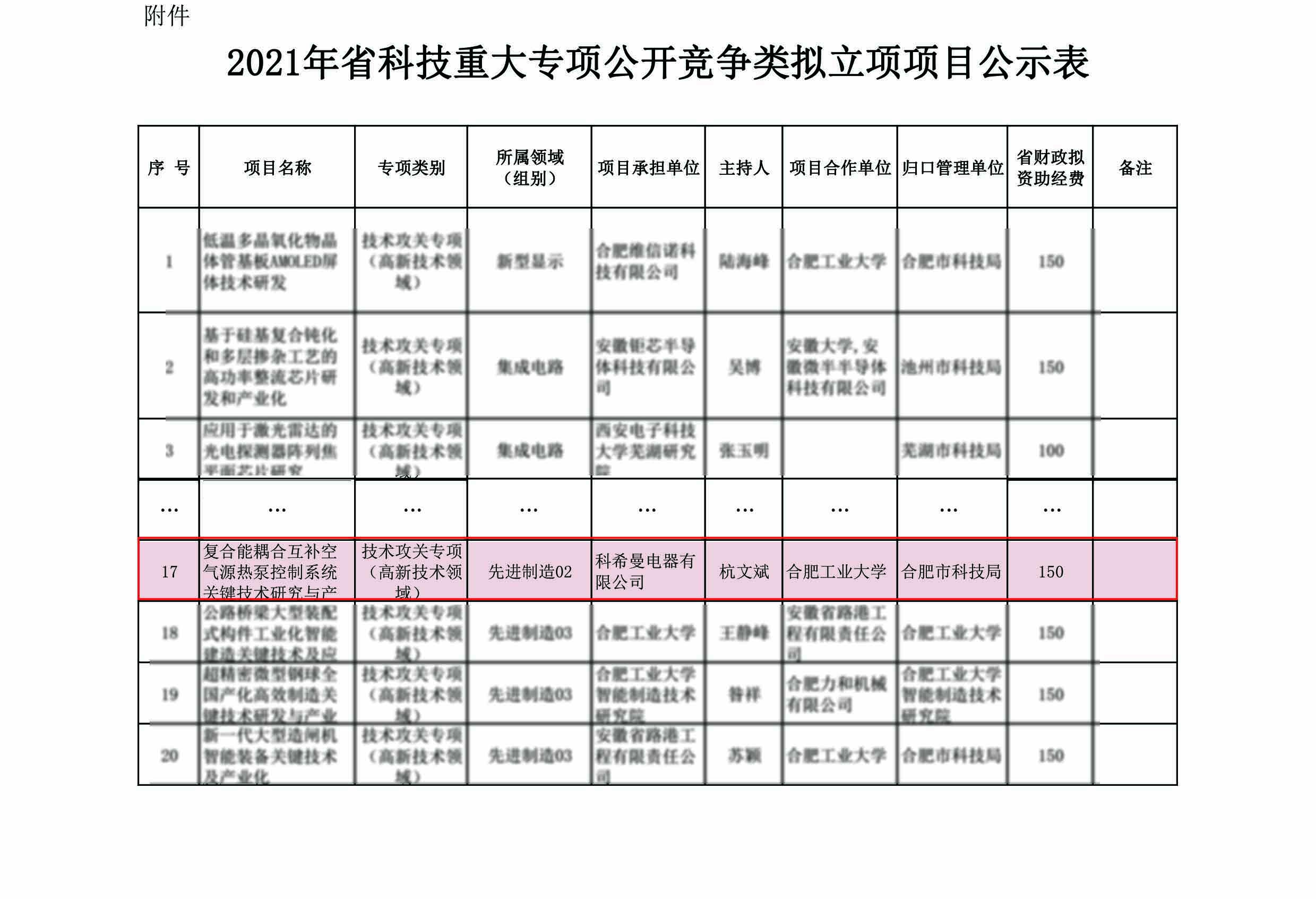 近日,安徽省科學(xué)技術(shù)廳發(fā)布《關(guān)于2021年第五批入庫科技型中小企業(yè)的公告》,科希曼電器有限公司成功入選安徽省2021年第五批入庫科技型中小企業(yè)名單。