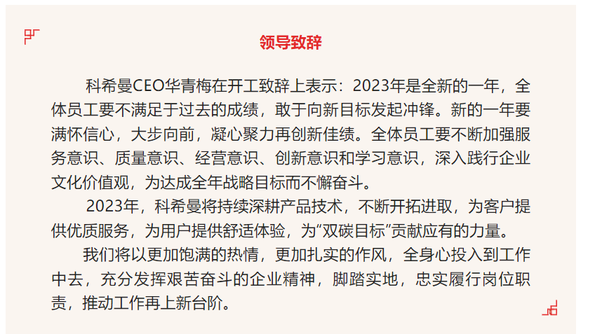 入選2023年安徽省首臺套重大技術(shù)裝備名單,不僅是對科希曼創(chuàng)新成果的一種認(rèn)可,也標(biāo)志著公司在不斷豐富產(chǎn)品應(yīng)用場景。公司將借此加快實(shí)施創(chuàng)新驅(qū)動發(fā)展戰(zhàn)略,推動該產(chǎn)品的市場推廣應(yīng)用,同時堅(jiān)持技術(shù)創(chuàng)新的決心,突破行業(yè)瓶頸,不斷拓寬應(yīng)用場景,在工業(yè)生產(chǎn)等高能耗行業(yè)持續(xù)發(fā)力,為客戶節(jié)約成本、創(chuàng)造更多價(jià)值,為綠色環(huán)保及“雙碳目標(biāo)”貢獻(xiàn)科希曼力量。
