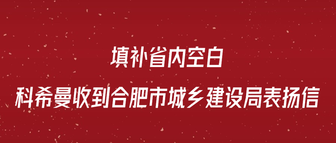 1月11日,科希曼電器有限公司收到來自合肥市城鄉(xiāng)建設(shè)局的表揚(yáng)信,信中對科希曼推動城鄉(xiāng)建設(shè)綠色轉(zhuǎn)型發(fā)展中做出的突出貢獻(xiàn)提出表揚(yáng)。