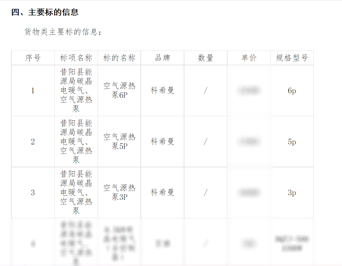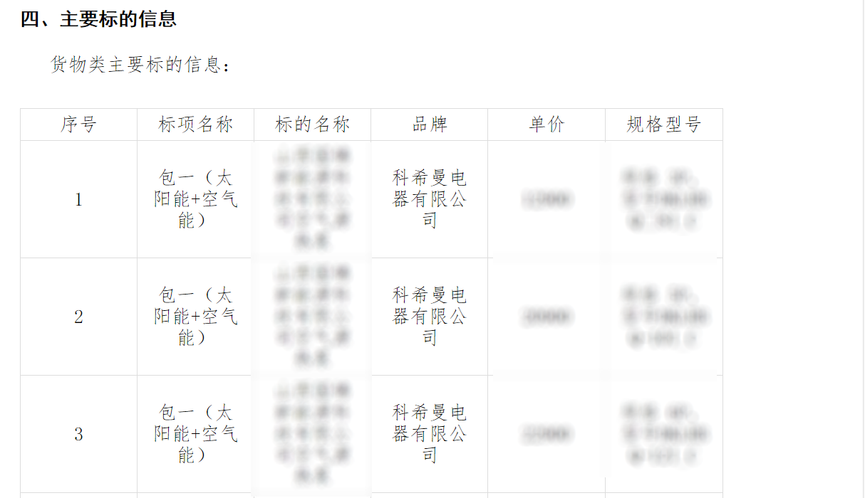 近日,山西省政府采購網(wǎng)發(fā)布中標(biāo)公告,科希曼成功中標(biāo)山西省昔陽縣界都鄉(xiāng)2021“煤改電”設(shè)備采購及安裝項(xiàng)目??葡B漠a(chǎn)品也已服務(wù)山西多地,為山西省的清潔取暖貢獻(xiàn)出自己的力量。