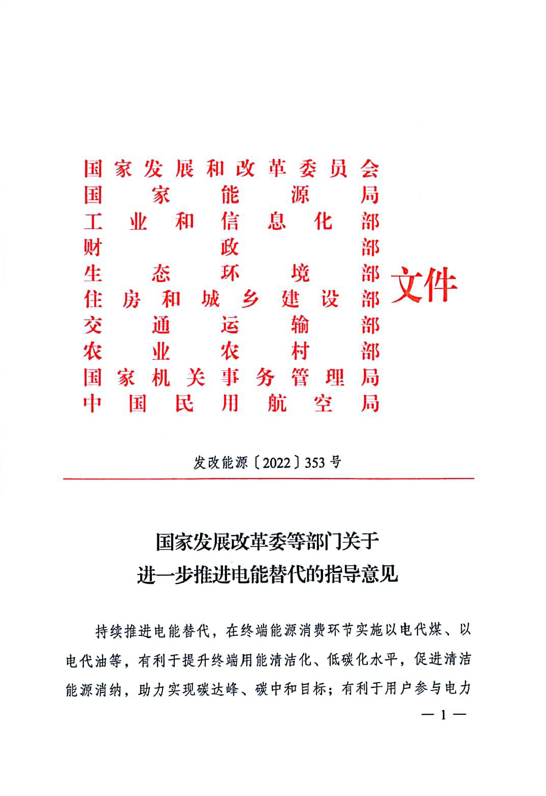 最新,3月9日,國(guó)家發(fā)展改革委、國(guó)家能源局、工業(yè)和信息化部、財(cái)政部、生態(tài)環(huán)境部、住房城鄉(xiāng)建設(shè)部、交通運(yùn)輸部、農(nóng)業(yè)農(nóng)村部、國(guó)家機(jī)關(guān)事務(wù)管理局、中國(guó)民用航空局等10部門聯(lián)合印發(fā)《關(guān)于進(jìn)一步推進(jìn)電能替代的指導(dǎo)意見(jiàn)》。