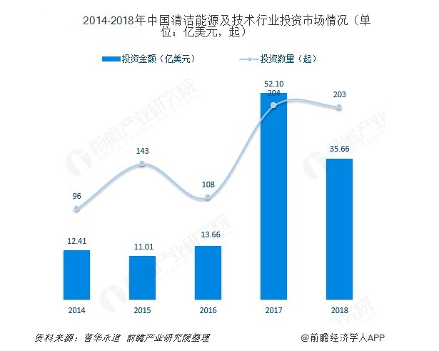在政策利好的大環(huán)境下,2017年以來(lái),我國(guó)清潔能源及技術(shù)行業(yè)投資規(guī)模得到了顯著的提升。在清潔能源及技術(shù)行業(yè)中,新材料由于技術(shù)壁壘較高,受國(guó)家的政策扶持力度較弱,投資并沒有清潔能源與環(huán)保那般活躍。但隨著2017年有關(guān)加快新材料創(chuàng)新成果轉(zhuǎn)化和應(yīng)用的文件下發(fā),近兩年該領(lǐng)域的投資活躍度也出現(xiàn)大幅上升。